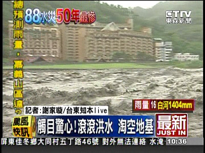 昨天晚上打電話給住在高雄的爸媽(父親已經81歲了), 連他都覺得怎麼會這樣勒? 還好高雄家裡沒事, 不過看到新聞裡台灣各地的慘狀, 實在很難過, 像是我最喜歡的台東知本溫泉區也遭殃, 雖然我們無法和老天對抗, 但是我相信憑著台灣人的韌性和毅力, 我們的家園ㄧ定會很快重建完成的….