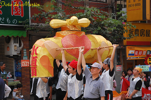 象徵著水資源的水道頭一定是一馬當先, 走在前方引領著大家的腳步, 而這些抬著水道頭的學生就是天母國中的學生, 也象徵著水道的傳承是永永遠遠的...