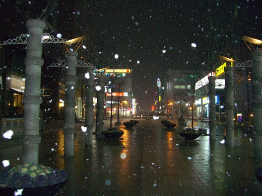 先後來到了日本及韓國,那年3月份的韓國依然持續下著大雪,大雪覆蓋了道路及車輛,開車前須將積雪鏟除方可讓車輛前進.