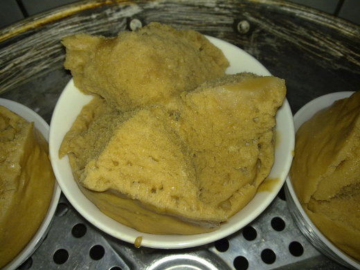 父親大人今日展示親手做的發糕,發糕諧音發財、高陞,外型發得越大,裂痕越深,即代表新的一年運勢越好.