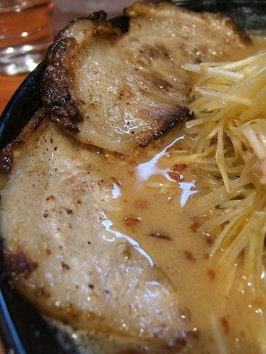 日本三大代表性的拉麵湯頭中,味噌口味要以北海道的札幌為代表。這家三種湯頭中最濃鹹味厚者就是北海道味噌,我點的這碗北海道辣味細蔥拉麵在視覺上可真是屬於廣漠無垠的大地色系。