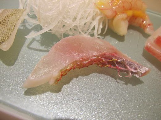 某種鯛魚,這我確定,但是甚麼鯛呢?金目鯛?嚼了幾口,沒嚐出甚麼味道。