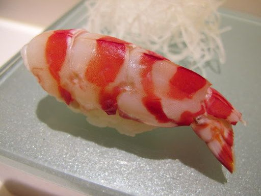 車蝦握壽司,這蝦也忒地肥短!酷酷的MASA師傅赫然又出現了,以下登場者也改為一貫貫的握壽司。因為不是坐MASA面前,看不到用幾手幾翻之類的甚麼手法來捏飯糰。不過,以我不到幼稚園程度的日料道行,就算欣賞到了,也看不懂吧!