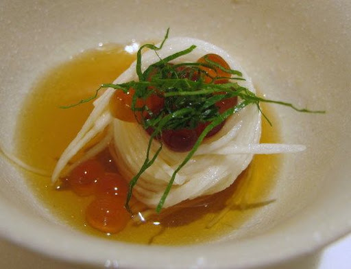 山藥細絲裹滿腹的鮭魚子,錯落的口感很是別致。