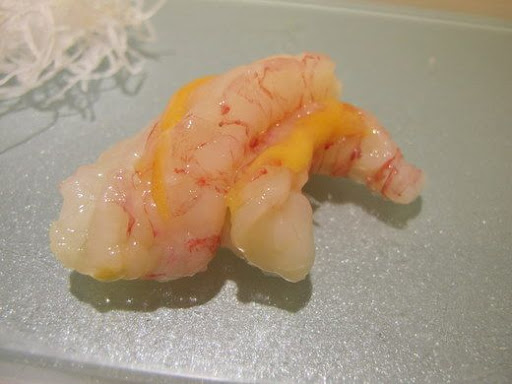 白子豆腐,不知是哪種魚的魚白,相當細密且毫無腥味,不過為什麼會出現在握壽司系列當中 ... 難道是剛剛因為拍照而忘了吃嗎?