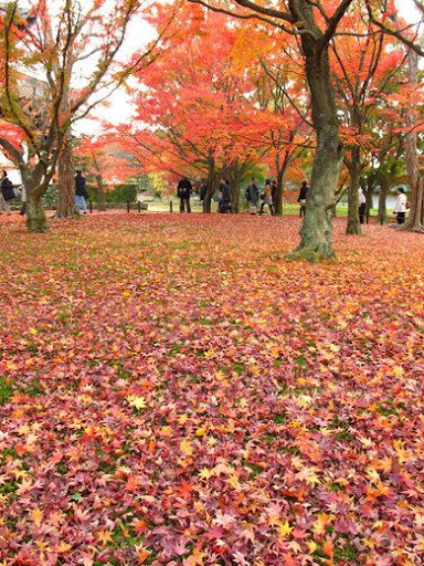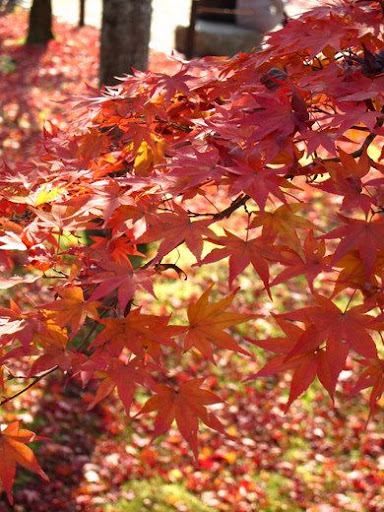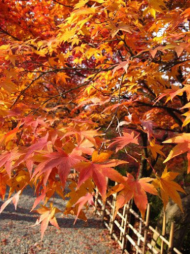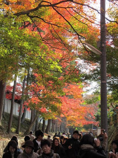 楓紅已走下坡的十一月底,造訪時已然過午,太陽也調皮地玩起藏頭露尾的遊戲,可一批批不斷在山徑間挪移的賞楓客依舊海湧不歇。自下公車始,一路有穿著制服者指揮交通,遊人雖夥,卻始終保持日本風格:有秩序。