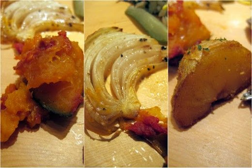 這三道,ㄟ,考倒我了,都是甚麼根莖的,煮得鬆鬆還磨得爛爛的 ...... 沒有不好吃,中間那馬鈴薯用某種莓醃漬過,風味絕佳。
