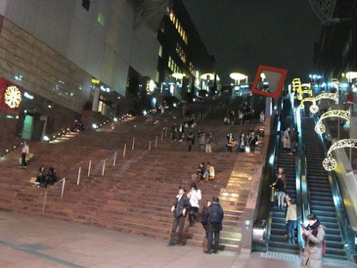 隨著四面八方來來去去的人們,賴在大階梯上,