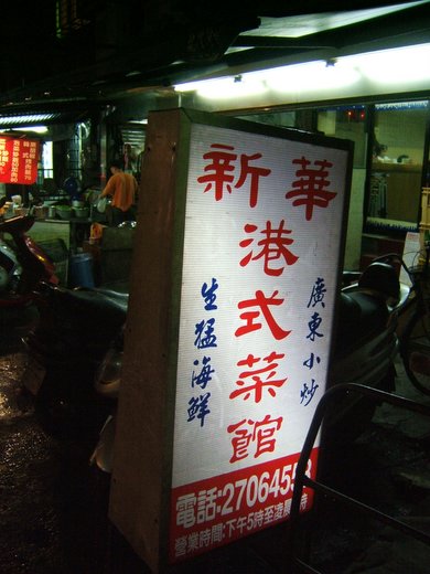 新華港式菜館呢,不要說是美器了,連個像樣的店面都沒有,塞在通化街的巷子裡頭,你得先繞過機車,踏過積水,不理滿是苔蘚的水族箱,側身擠進只有七八張檯子的屋子裡,運氣不好你的座位還能直接擋住進門的客人,餐廳裡又不禁菸 …,喧嘩的人聲加上瀰漫的煙霧,不禁讓人產生一種身在旺角西街某某號地下的遐想…,用餐環境不佳?沒訂位的話,最好六點前到,否則就準備站門口等。