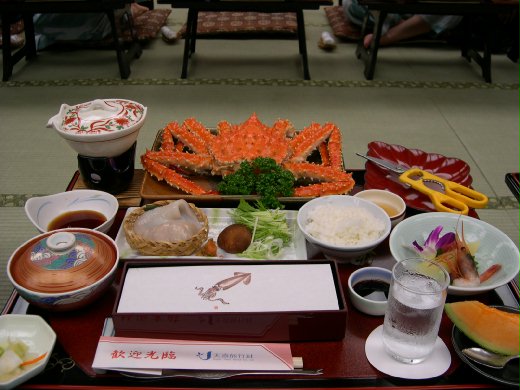 很豐盛吧? 第一張照片就是電視上看到的那種席會,第二張是在螃蟹和生魚片壽司吃到飽的餐廳。