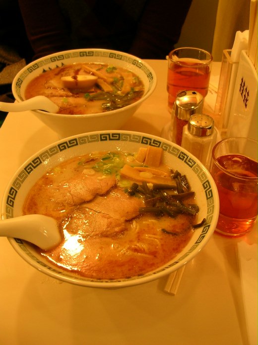 第一張照片是東京的「桂花」。位在新宿伊勢丹百貨附近的巷子內,曾經在某日本台的節目中看過其介紹;店面不大,走進店裡招呼還算親切,我用還算矇混的過的日文點餐,點的是最基本的「桂花拉麵」。