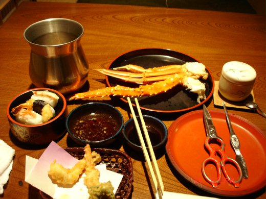 最近把照片再翻一次,找到這張2005夏天北海道之旅的照片;當時已盡行程尾聲,導遊帶我們去札幌市區一間叫做"かにとえび合戰"的餐廳,螃蟹吃到飽,為紀念這令人目瞪口呆的一刻,特拍照片數張,分享一下。
