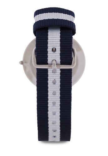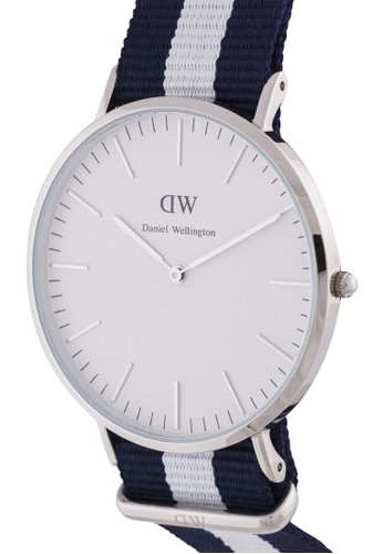 Daniel Wellington 的40mm Glasgow 經典手錶,是由Nato 尼龍打造的藍白相間條紋錶帶,扣環上刻有品牌標誌。 - 2 年維修保固 - 棉錶帶 - 不銹鋼裱框 - 刻度顯示細節 - Citizen 日本石英機芯 - 3 ATM 防水功能 - 長度可調整 - 可調式扣環設計 - 行針設計