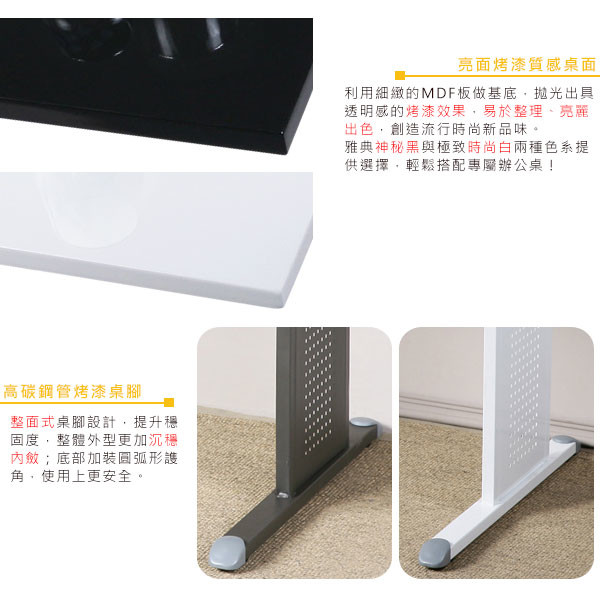 'Yostyle 路易140cm辦公桌-亮面烤漆,採用細緻的MDF板做基底,拋光出具透明感的烤漆效果,易於整理、亮麗出色,創造流行時尚新品味!桌面設計140公分的寬度,搭配俐落穩重的整面式桌腳設計,尺寸適中、堅固耐用,無論辦公、閱讀還是寫作都更加舒適自在!