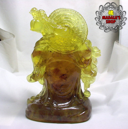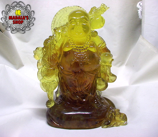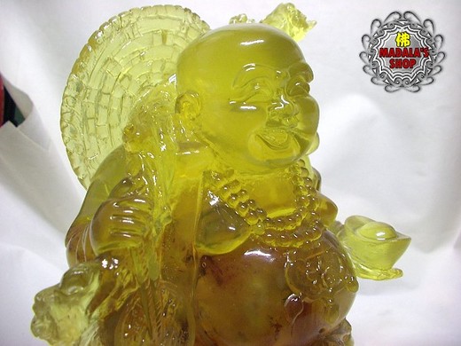 琥珀密蠟雕笑臉彌勒佛擺件,是由樹脂與琥珀原礦下去灌模製作而成的,上半部呈現金黃色透亮的光澤,下半部則呈現原礦的風味,非常漂亮。每天看著彌勒佛慈悲的笑臉,有如溫暖的陽光,融化我們的不快,讓我們心靈充滿喜樂。