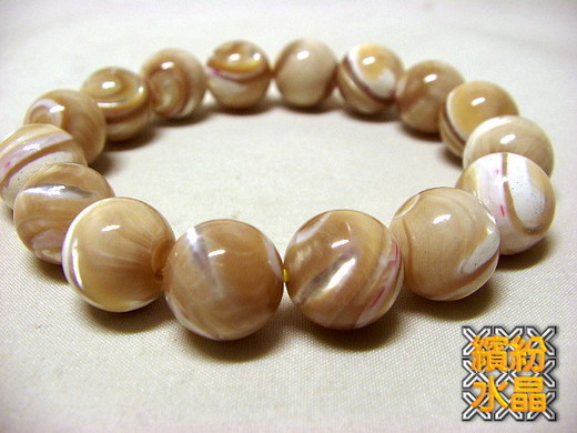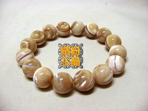 本手珠由太極金絲硨磲所組成,線材使用彈性線方便穿戴。太極金絲硨磲產量稀少,所以也是一種價格不低的有機寶石,太極金絲硨磲其扭曲旋轉的紋路,很像是太極的圖案,故給予太極金絲硨磲之名稱。