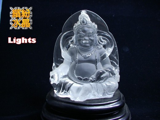 由天然白水晶取高檔料精雕而成的藏傳佛教黃財神雕像,雕像本身晶瑩剔透,內部僅靠底部有少數的雲霧。雕工技藝精湛,靈活靈現,非常好看哦,本人已經收藏五年多了。