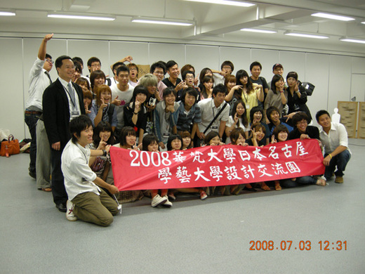 2008 06 28-07 06 華梵大學工業設計系由本系黃士嚴助理教授帶隊,大學部與研究所共17位學生報名參與,參加日本名古屋學藝大學主辦,台日韓工業設計學生交流活動總共9天活動。