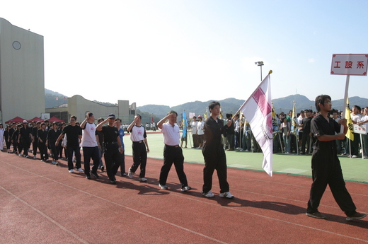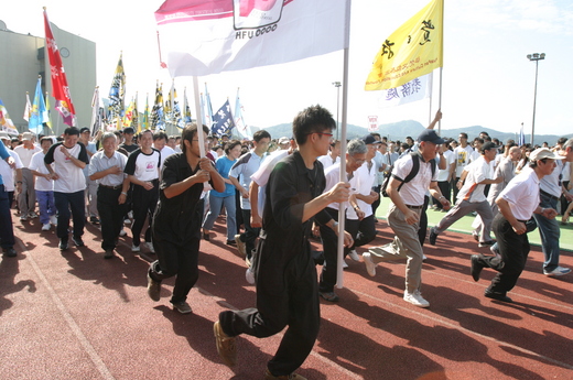 2008 10 31為華梵運動會,工設系大一大二學生決定穿工作服繞場一周。