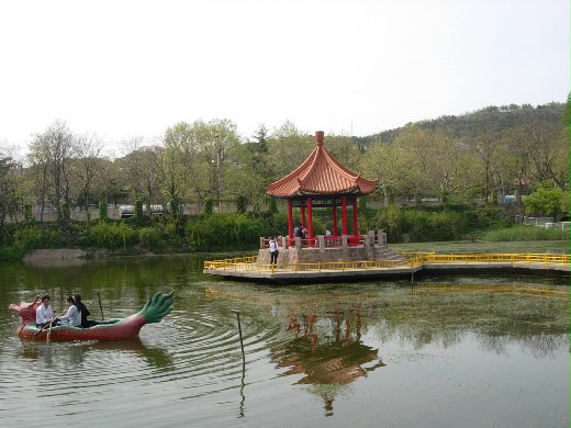 公園西側的小西湖,是一處小巧玲瓏的人工水景,九曲木橋通向湖心,岸邊花香四溢,垂柳依依,當微風吹過平靜的湖面,泛起了一圈圈漣漪,好不詩情畫意呀!園中最受孩子們青睞的莫過於兒童樂園了,這裡的旋轉馬車、摩天輪、水上浮球吸引著許多天真活潑的小孩們,其實大人們也很喜歡玩呢!