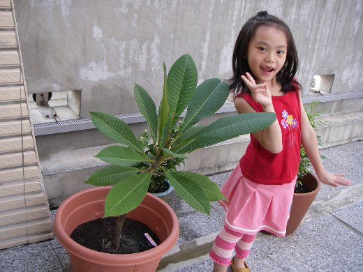 去年的矮雞蛋花和現在的模樣對照,的確長高許多,頭好壯壯呀!