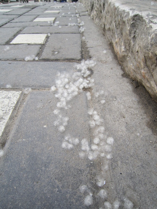 照片中的白棉絮,是北京街頭滿街飛的楊柳絮,