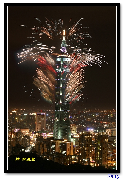 好心的「威利」寄來幾張「101煙火秀」的照片,信上還附帶提到:「基隆攝影學會主編陳進豐拍的2008跨年煙火秀照片,長時間的等待只為了三分鐘,非常非常辛苦,一定要跟妳分享‥‥‥去年他拍的照片被廣告公司收購一幅10萬,呵呵呵~要拍到像他一樣好的照片,設備跟技巧都要夠好才行」。
