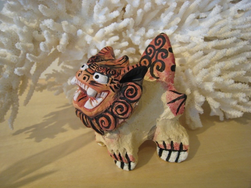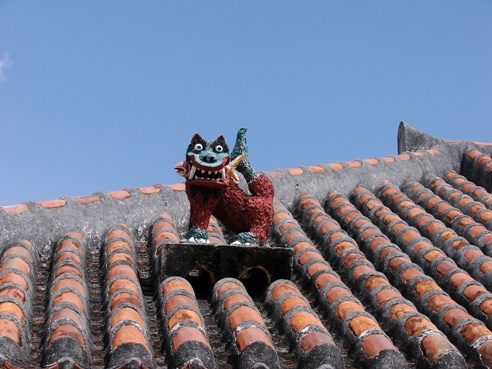 馬 亞在竹富島登岸時,碼頭邊就遇見一隻風獅爺,具有中國風情,獨自蹲在紅瓦上,很有趣。