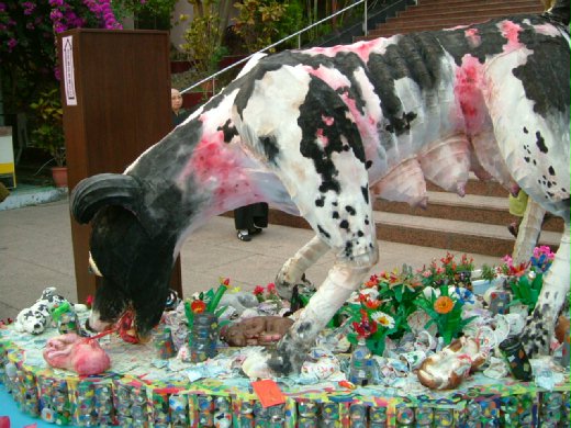 從台北中正紀念堂「創意花燈」看到高雄佛光山的「競賽花燈」,以「狗」為主題的作品多半是描述歡樂、可愛、俏皮的「狗」姿態,只有這座花燈給人完全不同的思考和感受,顯得格外醒目。