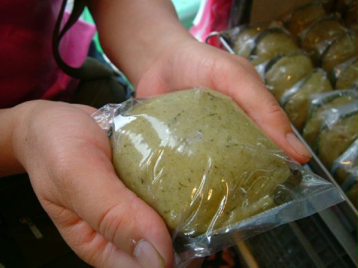 她把雙手伸出來給我看,用以證明她的草仔粿是「純手工製作」的。