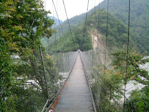走在吊橋上得步步小心,又愛又怕的感覺和顫顛顛的心情,像「初戀」‥‥‥在「上不著天、下不著地」的橋心,唯一能依靠的只有二根鋼索,‥‥緊緊握住了‥‥一步一步往前走。