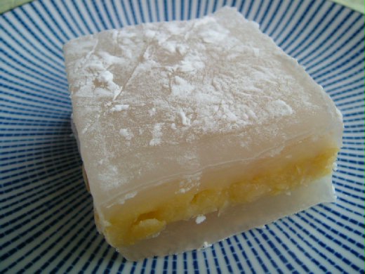 做成的「藕粉涼糕」就是這種半透明的凝灰色,雖然不以艷色誘人,但藕粉卻能把餡料襯托出極美味的質感,馬 亞最喜歡「蓮蓉」夾心的餡子,淺黃的蓮蓉和輕灰的藕粉,二種柔柔的顏色搭配起來非常清雅,「蓮蓉」綿軟微香,「藕粉」輕彈唇齒,只有吃過的人才知道妙。