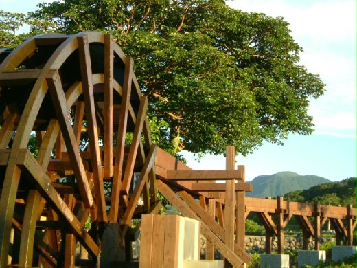今年初才建好,略有規模而已,除了那座汲水的木架水車外,其餘的建物都很少,小亭、小橋、小水池‥‥連樹木都還很小,所以遊客也不多。