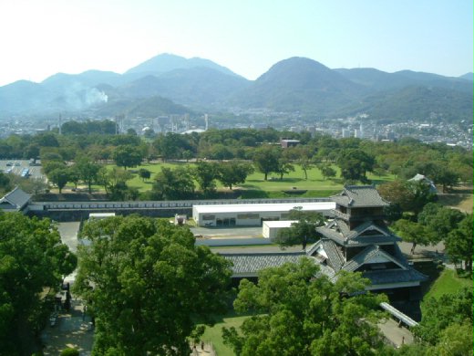 遠眺冒著熱氣的火山、城牆外新舊並陳的現代建物、護城河以內碧綠的草地和一株株高大無比,油油鮮綠的「銀杏樹」,不覺沈思起來‥‥。