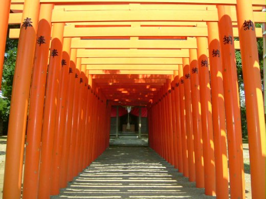 只有「稻荷神社」前面的鳥取是鮮麗的橙紅色。