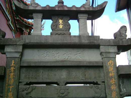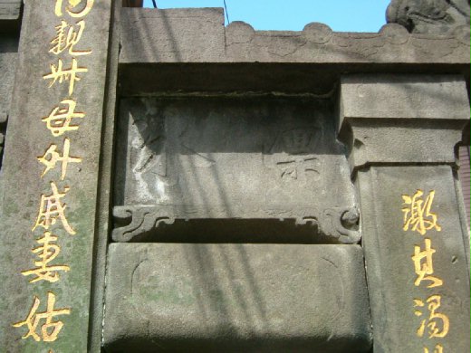在石坊的最上方,有二個金色的大字,寫著「聖旨」,非常醒目,旁邊襯著浮雕的蘭花和梅花,其下有四個大字「天旌節孝」襯著石刻的竹節,意義深遠。