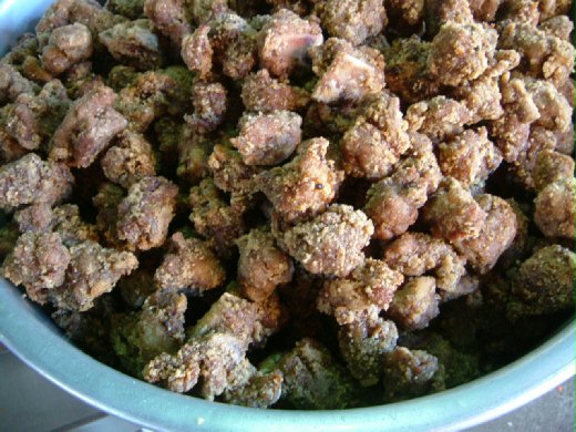 除此之外光明路上「漢奇」的排骨酥,是把排骨剁成小塊,用五香料醃過的口感與蓬萊排骨酥明顯不同,但乾吃也是一種香酥的感覺,若是放在蒸籠裡煨成一盅香濃的排骨酥湯,就更可口。