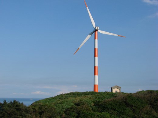 目前只有石門核一廠的大風車有橘白相間 其餘的都是灰白色