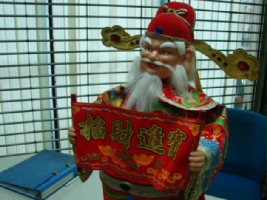 豬大姐遇見一位碧眼白鬚的「財神爺」站在櫃台上向大家道恭喜,說的竟是英文‥‥這年頭洋人媚華一點都不稀奇,只要穿上古裝就可以過舊曆年了!