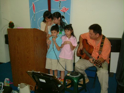 彈著吉他,他偏著臉看看圍在身旁的妻子兒女‥‥孩子們像天使般的歌聲,和可愛的臉龐讓馬兆駿找到了愛的源頭。