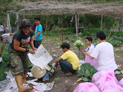在輔導員的指揮下,孩子們分工合作打包完成,菜園的收成將要運送到山下的供應商店,這些不施化肥、不灑農藥的伊甸菜,可是搶手貨喲!