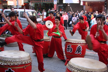 擊鼓舞獅,鞭炮乍響,鑼鼓喧天,笑語不斷‥‥‥淡水鎮上好熱鬧。