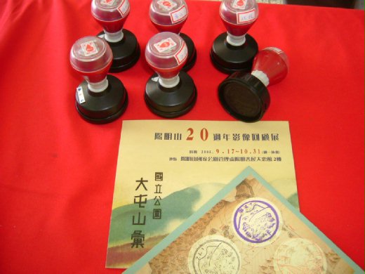 為了使這個特展生色,主辦單位重新翻模製造了一組戳章,放在大忠館的展覽會場外,讓遊客們親自蓋印留念,所以這張摺頁是值得收藏的。