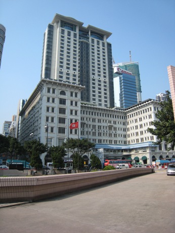 半島酒店位在九龍尖沙咀梳士巴利道上,距離「天星碼頭」及「郵輪碼頭」不遠,比起環繞在維多利亞港旁的玻璃帷幕高樓而言,「半島酒店」是屬於舊式的建物,外觀是灰白色的石材,格局大方,正面是ㄇ字型,有點像是伸著前爪很威猛但又安安靜靜趴著的獅子,門口有個活力充沛的噴水池和幾輛加長型的勞斯萊斯名車。