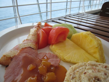 坐在晨風輕吹的船舷邊吃早餐說有多浪漫就有多浪漫,午餐可以選一個帥哥同桌用餐,邊吃邊聊十分有趣,印度來的、上海來的、北京來的、香港來的、韓國來的、日本來的,還有船上的義大利籍船員‥‥不同國籍的人都在餐廳出現了,聊天、交朋友的機會大大增加。
