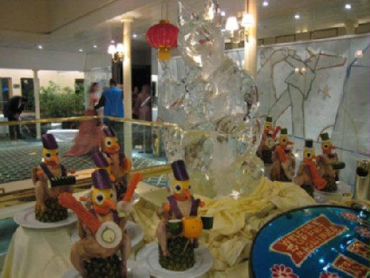 在不同的時段,船上還安排了各種活動,像品名酒、沖義式咖啡、烘烤披薩、蔬果雕刻、美姿美儀、有氧舞蹈、義大利語、‥‥最有趣的是一堂「逃生課」。