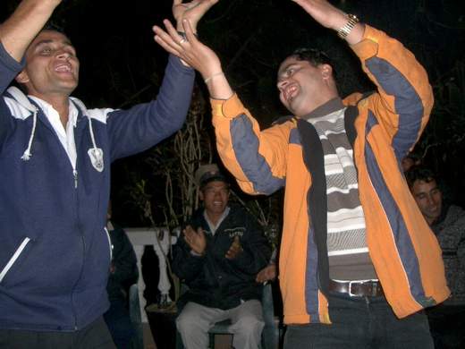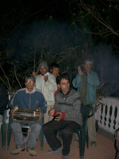 大夥兒為了這一晚的安排,可是挖空心思,特地邀請在地的朋友一起來飲酒高唱,藉著烤肉的爐火點燃了大家的熱情,連Ajay和Laxman也捨命陪君子,High翻天!手鼓的陣陣樂音加上私釀酒的香氣,朋友的盛情難卻,我們個個狂歡,Raju再度醉倒在眾友間,那歡喜雀躍的心情,難以言喻。