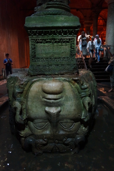 地下水宮有兩根柱子以梅杜莎頭像為基柱,一倒置、一側放。女妖梅杜莎有著一頭蛇髮,被她看到的人皆成石頭,以梅杜莎頭像為基柱,有避邪功用。
