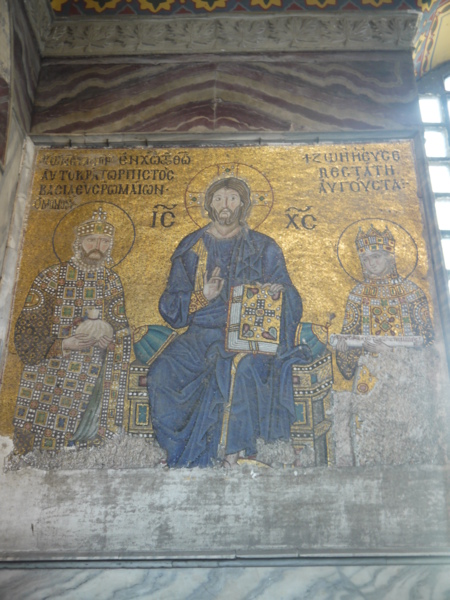 東羅馬皇帝捐獻聖索菲亞大教堂,教堂就以馬賽克拼出皇帝、皇后的圖像。
