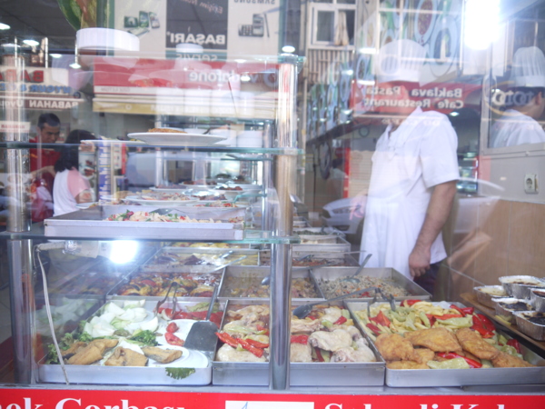 途經一家餐館,欣一在店外徘徊了好一會兒,這是旅遊書上寫的大眾食堂,就是臺灣的自助餐廳。停留土耳其的最後一餐,我們決定吃大眾食堂。